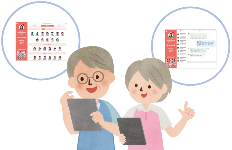 ITが苦手な方もケアズなら大丈夫。やさしい雰囲気の画面と、大きめのボタンで誰でもカンタンに