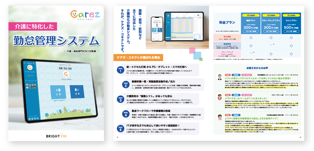 総合パンフレット、勤怠管理特長についての資料をご用意いたしました。